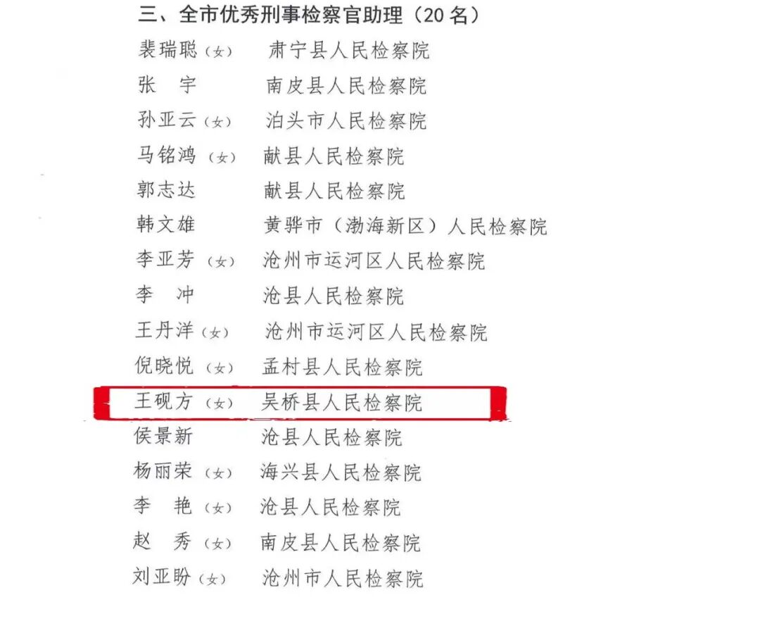 喜报!我院1名干警荣获“全市优秀刑事检察官助理”称号