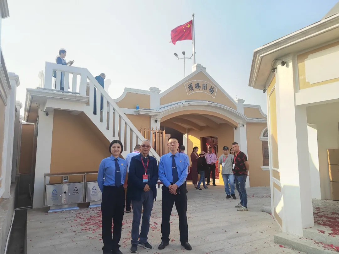 检察办案人员与侨领在修缮后的梅阁码头旧址合影留念。