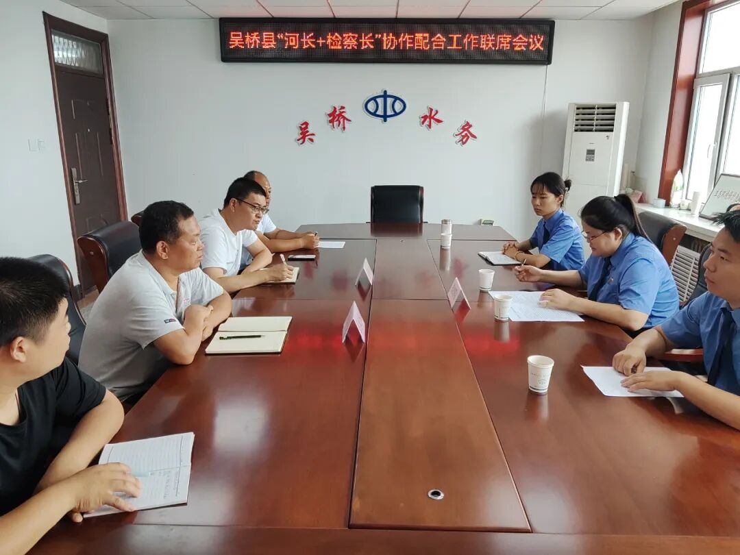 为深入贯彻落实“燕赵山海 公益检察”护航美丽河北建设专项监督活动,充分发挥检察公益诉讼监督职能作用,推动“河长+检察长”协作机制工作落到实处,齐心协力打好水环境保护攻坚战,近期,吴桥县人民检察院与吴桥县水务局共同召开联席会议,并开展巡河巡查专项活动。 会上,双方结合各自工作职责及工作重点,互相通报了“河湖长+检察长”协作机制落实情况,围绕河湖“四乱”清理整治、河道管护等工作存在的问题困难进行交流探讨,并就水行政执法与检察监督衔接、线索移送等工作内容进一步达成协作共识。 会议结束后,我院干警参观了“河长制”主题公园并使用“碧水吴桥”微信小程序,真切体验吴桥县水务局对保护河湖生态环境开创的特色亮点。随后,我院对水务局巡查桑兴河、宣惠河及漳卫新河活动开展检察监督,重点查看河道沿岸是否存在随意倾倒垃圾、非法排污等问题,并做好巡河记录。此次巡查,发现案件线索1件,针对巡查的问题,吴桥县检察院将及时跟进调查核实,督促有关部门积极整改。 下一步,我院将常态化落实“河长+检察长”工作机制,深化与有关职能部门的线索互通、信息共享、协调联动机制,形成行政执法与检察监督合力,共同维护好吴桥县境内河湖生态,打造“河畅、水清、岸绿、景美”的县域水环境。