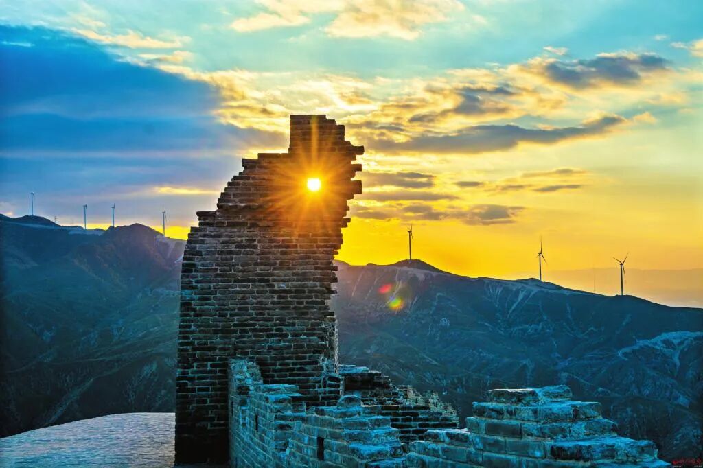 山西省忻州市代县雁门关镇白草口村修缮后的长城“凤回头”敌台风光旖旎。