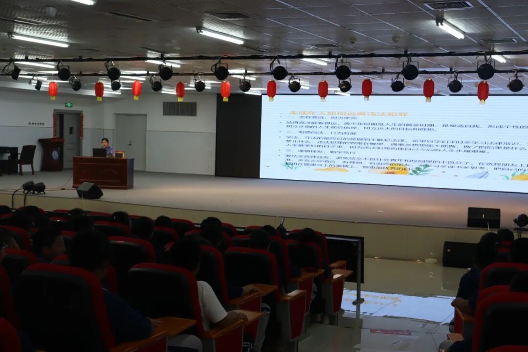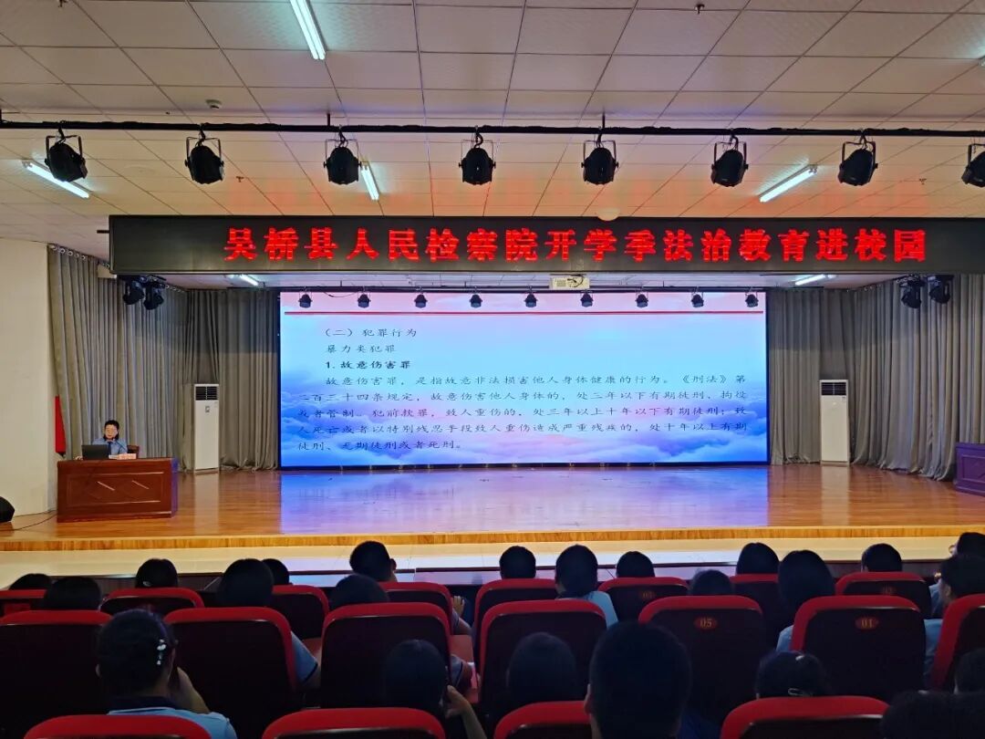 吴桥县职业技术教育中心宣讲现场 告别夏季的暑热,迎来秋季的清凉,开学季如约而至。为进一步提高未成年人法治意识,预防和减少未成年人违法犯罪,推动平安、法治校园建设,吴桥县检察院“梧桐梦”未检团队先后走进吴桥县职业技术教育中心、澜阳中学、第一初级中学、第二初级中学等4所学校进行法治教育授课,为学生们把好“开学关”,护好“开学路”。