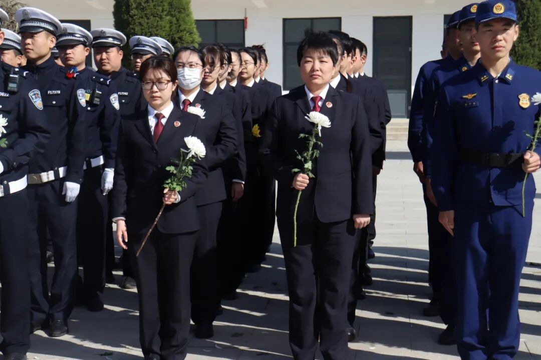 清明时节,追思悠悠。为缅怀革命先烈,弘扬爱国主义精神,4月2日上午,吴桥县人民检察院组织开展了“清明祭英烈 丰碑砺初心”主题党日活动。 全体干警前往吴桥县烈士陵园,在庄严肃穆的烈士纪念碑前整齐列队,敬献鲜花、鞠躬默哀,并面向党旗重温入党誓词。铿锵誓言回响陵园,彰显了检察人继承先烈遗志、忠诚履职的决心。 干警们走进烈士纪念馆,通过观看历史照片及珍贵文物,深入了解吴桥革命先辈的英勇事迹。在讲解员动情的叙述中,干警们仿佛重回烽火岁月,深刻体悟先烈们“捐躯赴国难,视死忽如归”的崇高精神。
