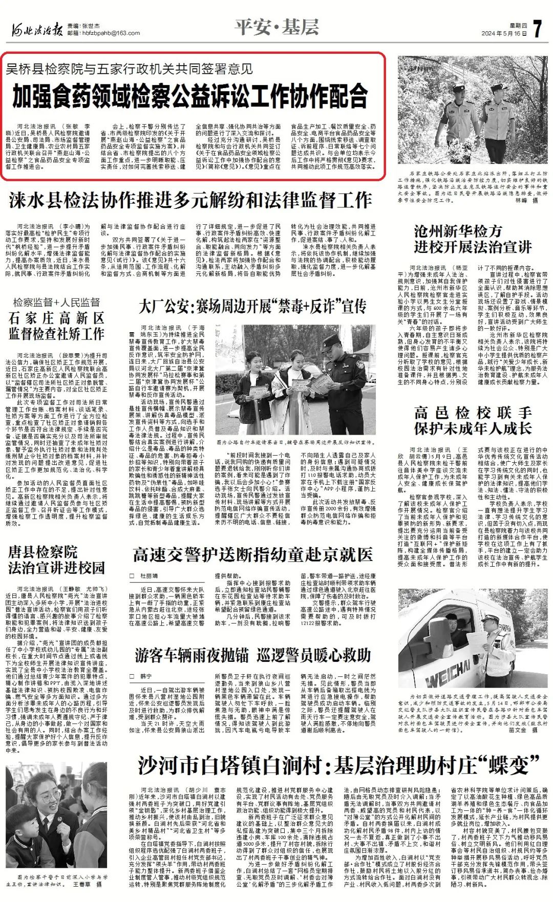 《河北法治报》刊发:吴桥县检察院与五家行政机关共同签署意见 加强食药领域检察公益诉讼工作协作配合